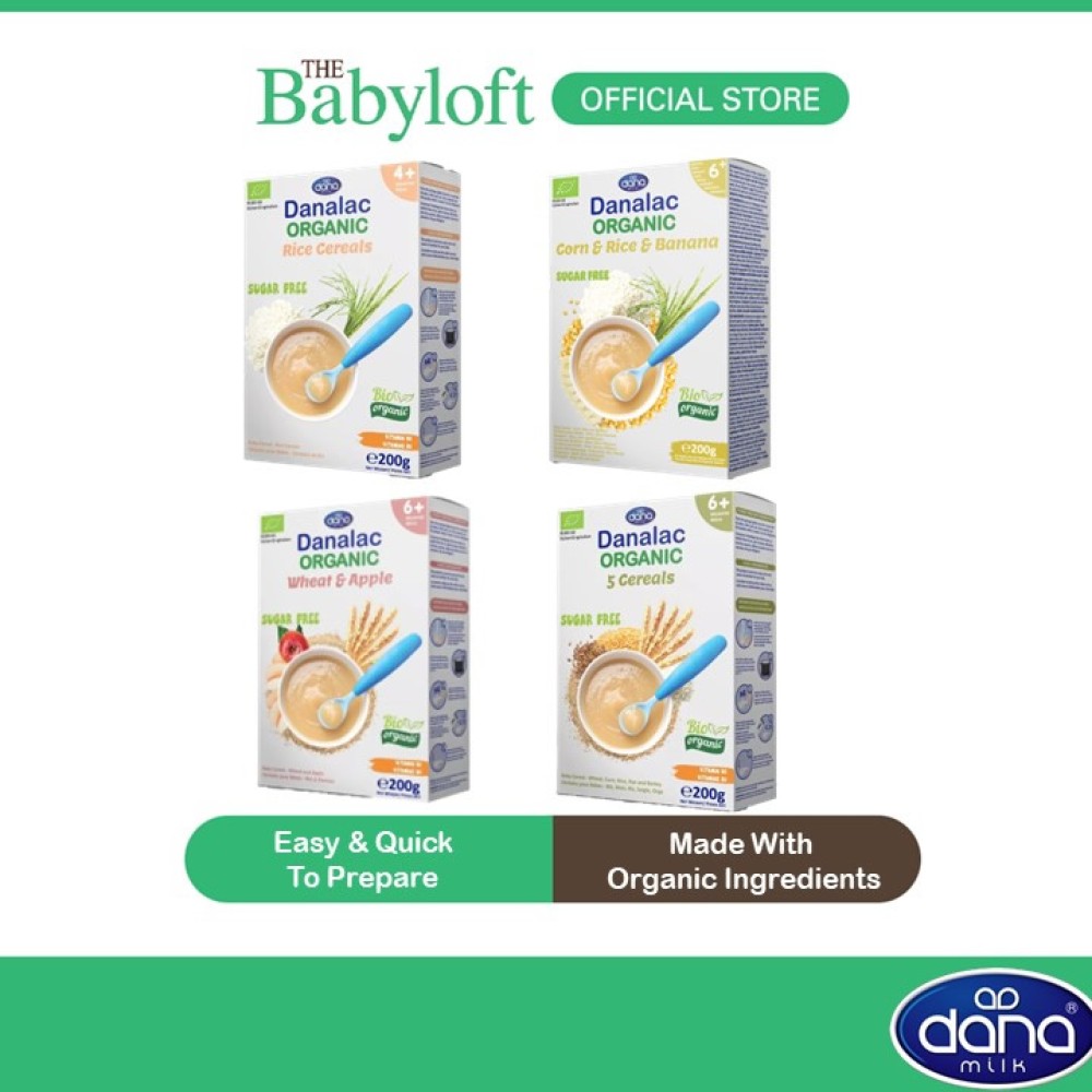 Danalac Organic Baby Cereal 5 Wheat & Apple/Corn & Rice & Banana/Rice (200g)