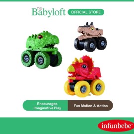 Infunbebe Dinosaur Cars This Infunbebe Dinosaur Toy Car is safety tested for ages 12 months and above Fun motion and action for baby 3-in-1 box -Safety Tested -For Age 12 months and above -Fun motion..