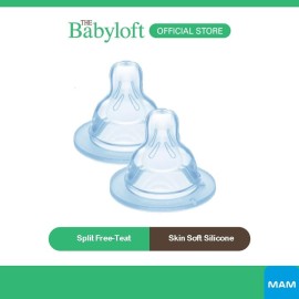 MAM Teats For 4+ Months SkinSoft Silicone Nipples for Baby Bottles - (Size 3) Fast Flow SPILL FREE (Pack of 2)